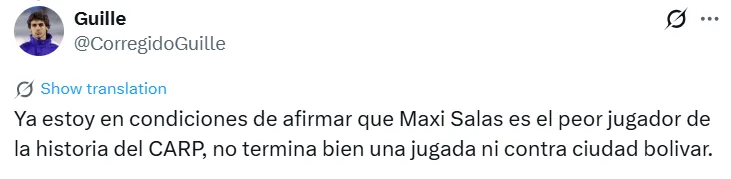 Las críticas de los hinchas por el partido de Salas ante Ciudad de Bolívar