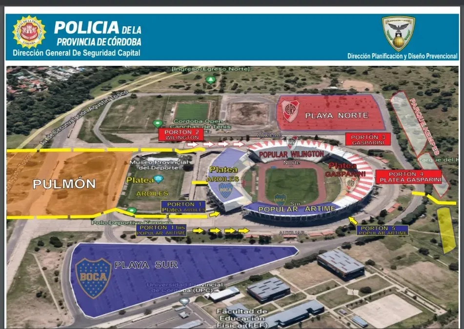 En cuánto al acceso a las tribunas popular Willington y platea Gasparini, River tendrá un lugar de concentración de los hinchas, que serán 28 mil porque esa es la cantidad de entradas asignadas. Habrá tres portones a disposición para entrar: el 2 (Willington), el 3 y el 4 (Gasparini). Además, estarán resguardados en la Playa Norte.