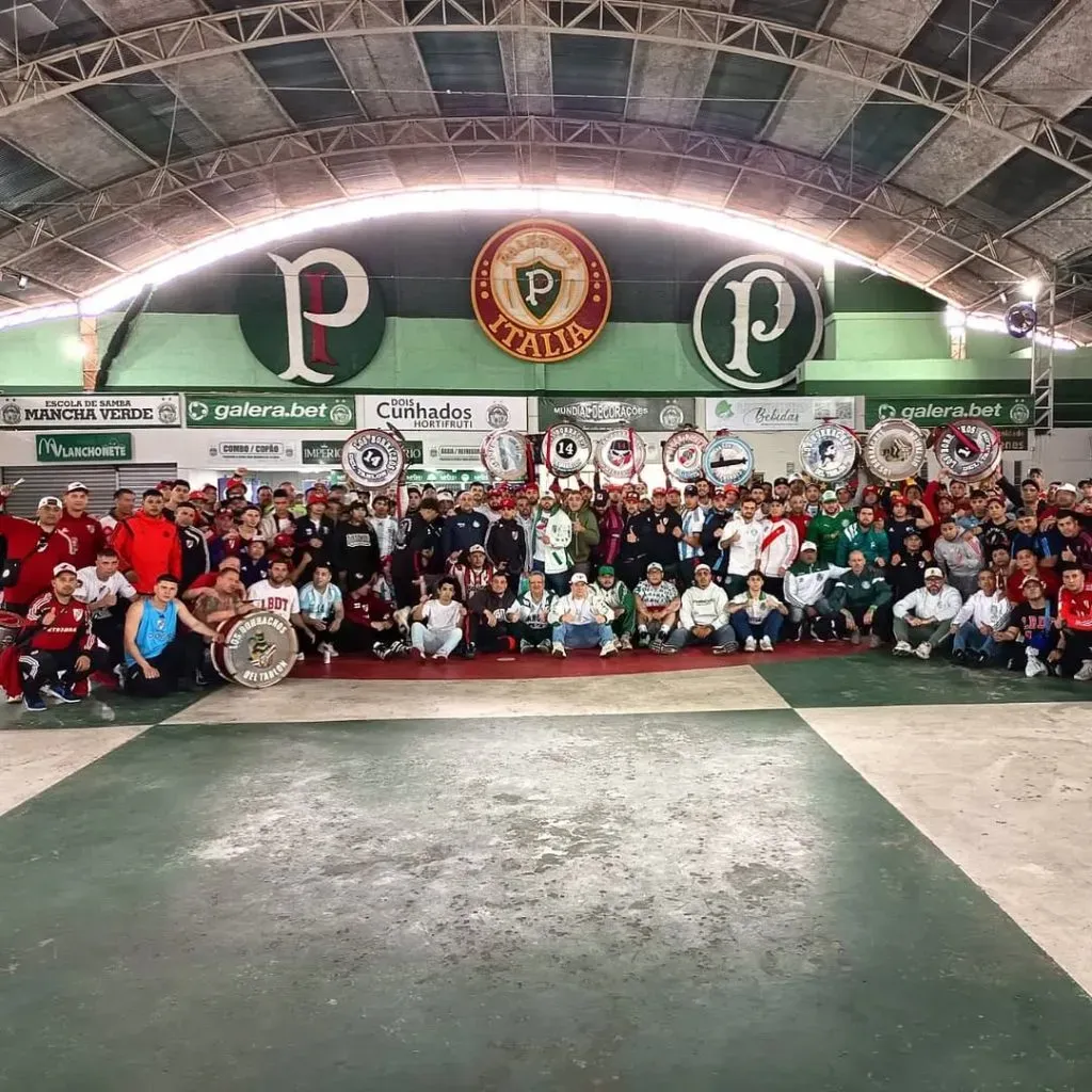 Con una foto grupal, en la que los hinchas aparecen con sus bombos y en un clima totalmente amistoso, la gente de Palmeiras se prepara para recibir al pueblo riverplatense en el Allianz Parque, donde acompañarán al equipo de Marcelo Gallardo desde las 21:30.