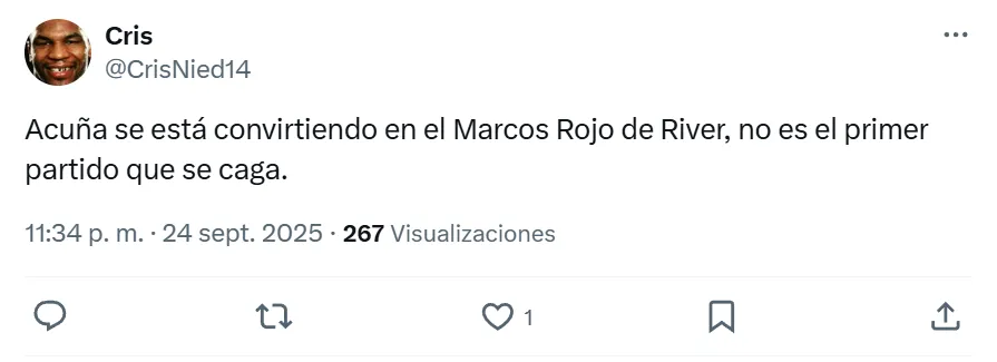 Después de un flojo 2024, Marcos Acuña levantó muchísimo su nivel en este 2025, y por momentos fue de los mejores jugadores del equipo. Sin embargo, en la eliminación de River ante Palmeiras por Copa Libertadores, partido más importante del año, no tuvo una buena noche y se fue expulsado.