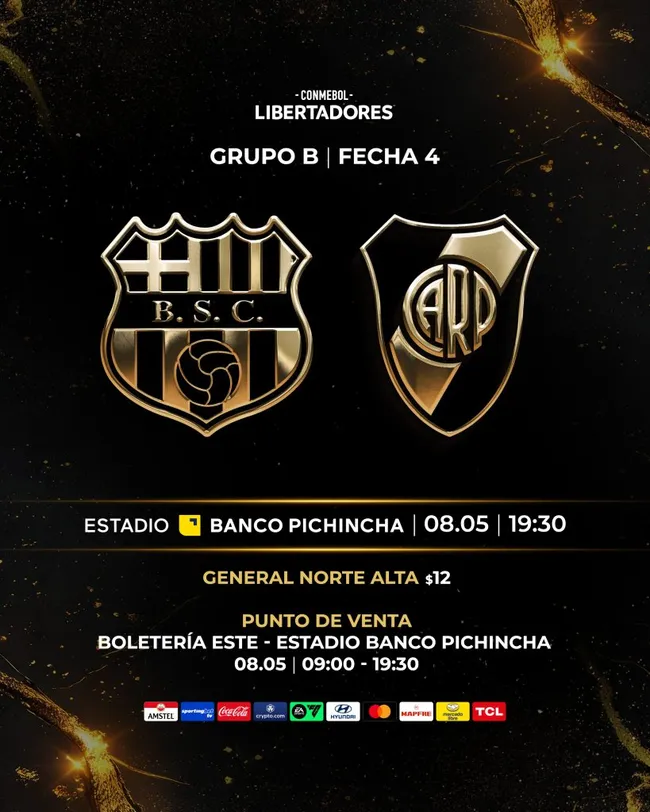 A eso hay que sumarle a los simpatizantes locales, tanto ecuatorianos como argentinos, que residan en Ecuador y que vayan al sector visitante. River ocupará la popular General Norte, detrás de uno de los arcos, y las entradas se compran de manera presencial en la cancha hasta el horario del inicio del partido. Tienen un costo de 12 dólares.