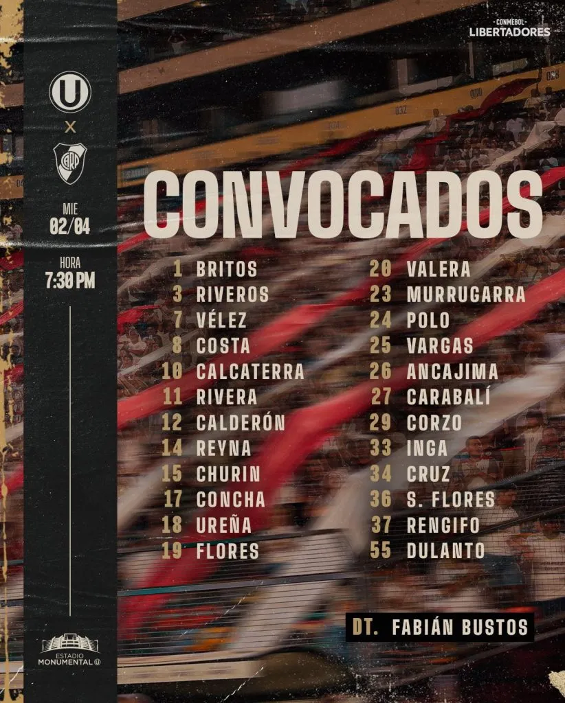 Los convocados de River vs. Universitario