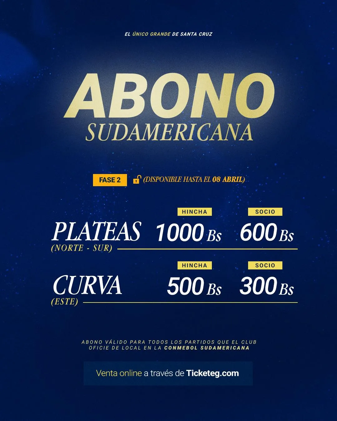 Desde Blooming tomaron la decisión de aumentar en un 100% el valor de las entradas. Antes, los abonos para los socios iban desde 100 a 250 pesos bolivianos, mientras que para hinchas de 200 a 400. Luego del sorteo, pasaron de 300 a 600 Bs para sus asociados, mientras que para el público en general se fueron de 500 a 1000 Bs.