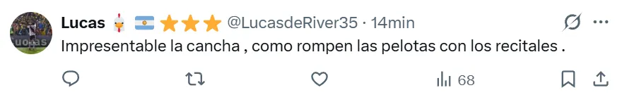 River recibió a Carabobo por la segunda fecha de la Copa Sudamericana 2026. Y uno de los aspectos salientes del encuentro fue el pésimo estado del campo de juego del estadio Monumental, que generó un fuerte descontento en los hinchas a días del Superclásico.