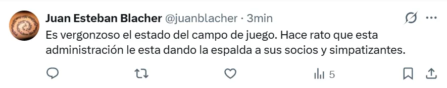 Entre los trabajos en el césped post recital de AC/DC, el adelantamiento del proceso de resembrado y la lluvia que cayó durante el día, el campo de juego se vio incluso peor que en el partido contra Belgrano de hace 10 días. Tanto es así que el disconformismo llegó hasta los futbolistas.