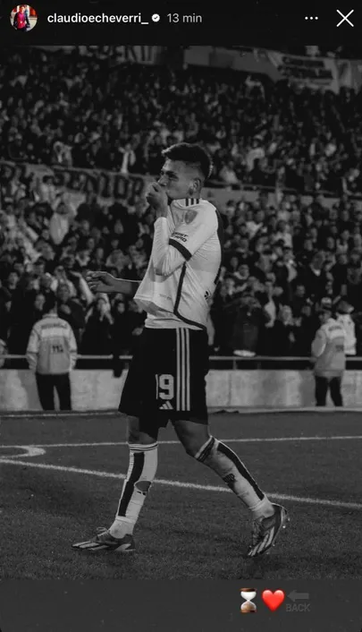 Frustrado por su poca participación en el club alemán, Claudio publicó una imagen de cuando todavía era futbolista de River. En la misma se lo ve besándose el escudo del Millonario frente a los hinchas en el Monumental. Acompañando la fotografía, el chaqueño colocó tres emojis: un reloj de arena, un corazón y un “back”.