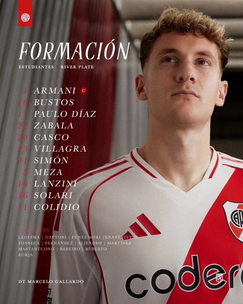 Con respecto al duelo en Mendoza son tres los cambios: regresa Paulo Díaz a la zaga central en lugar del expulsado Leandro González Pirez, Daniel Zabala tendrá su chance reemplazando a Gattoni y Manuel Lanzini le ganó la pulseada a Mastantuono va por el lesionado Echeverri. Miguel Borja volverá a ser suplente, pese a que se especulaba con su titularidad.