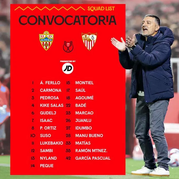 De cara al partido que el Sevilla disputará por la Copa del Rey ante Almería, este sábado al mediodía, Xavi García Pimienta decidió convocar a Gonzalo Montiel, sin importar que las negociaciones puedan cerrarse más temprano que tarde.