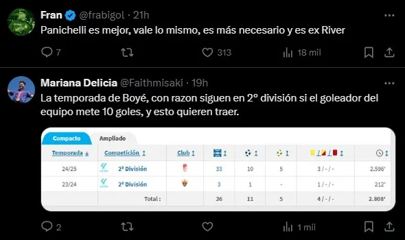 Pese a la inminente llegada de Maxi Salas, River podría buscar otro delantero en el mercado de pases ante la lesión de Driussi y las posibles salidas de Borja y Tapia. Y uno de los que apareció en carpeta es Lucas Boyé, futbolista surgido en el club y con presente en España. ¿Cómo reaccionaron los hinchas a la noticia?