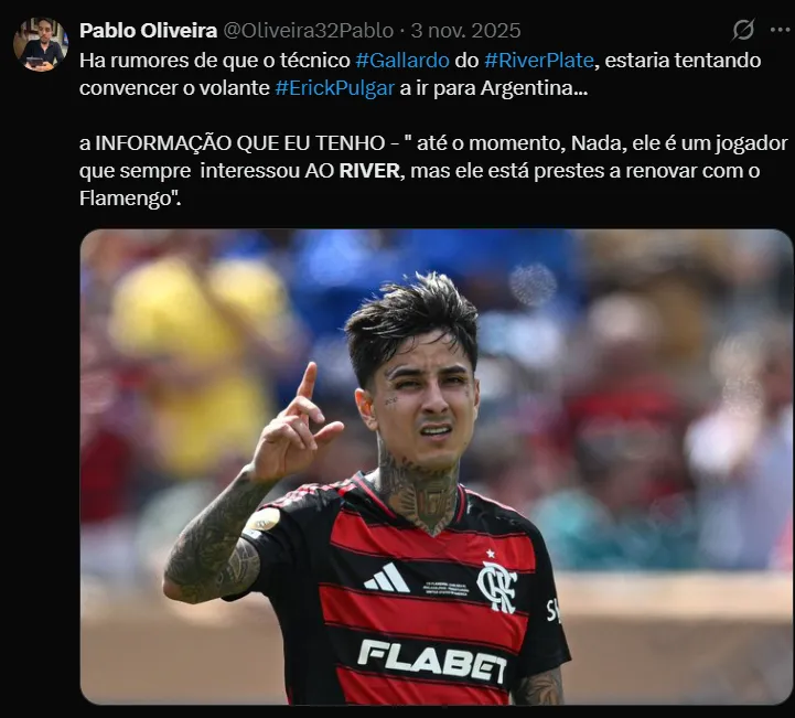 El volante tiene contrato hasta fines de 2027 en el Mengao, pero una cláusula de su contrato lo hará emigrar antes del cumplimiento del mismo. Flamengo aceptará desprenderse del mediocampista de la Selección de Chile por apenas cuatro millones de dólares al tener un salario muy alto. Tras la salida de Filipe Luis como DT, los brasileños harán una limpieza de jugadores a mitad de año y uno de los que pagaría sería Pulgar.