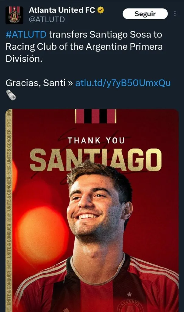 Dicho y hecho, la ejecutó. Atlanta United ya hizo oficial la despedida al volante de 25 años. El club de la MLS, a su vez, se lo había comprado a River en 2021 por 6 millones de dólares. Tras su buen desempeño en Avellaneda, y ante la falta de un jugador que se gane por rendimientos ser el 5 del Más Grande, los hinchas pidieron por un regreso de Santiago Sosa. Que finalmente no se dará.