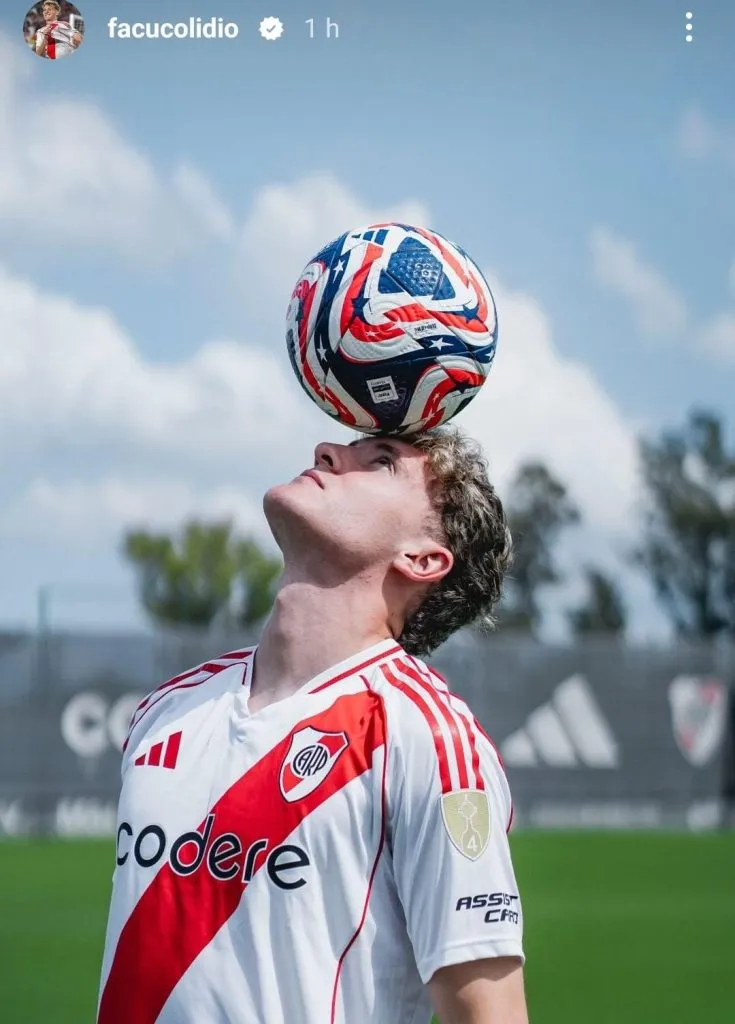 En sus redes sociales, Facundo Colidio y Nacho Fernández compartieron imágenes con la pelota que ya está a la venta. Mientras el delantero la sostuvo sobre su frente, el volante del Millonario optó por una postura más descontracturada: sentado y con la pelota en la mano.