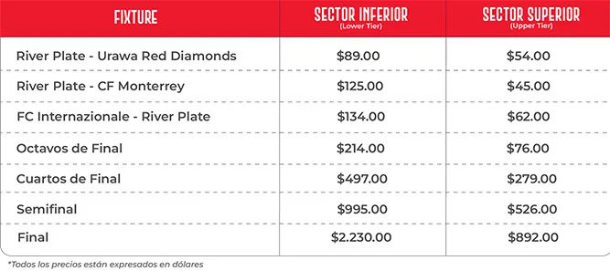- VENTA PARA EL PÚBLICO GENERAL: además de la venta exclusiva para socios de River, este jueves a las 19.00 (hora Argentina) la FIFA pondrá a la venta las entradas para el público general en sectores comunes del estadio para todos los encuentros de fase de grupos, a través de la web de Ticketmaster.
