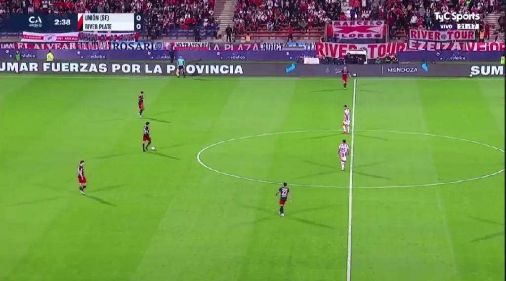 River muestra falencias a la hora de sacar la pelota limpia desde el fondo. En esta imagen se puede ver a Castaño sin receptores libres cercanos para dar un pase.
