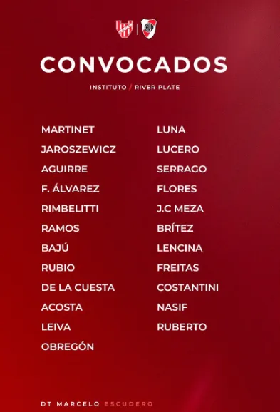 River afrontará un nuevo partido de Reserva luego de la dura derrota que sufrió la fecha pasada ante Argentinos Juniors, con la expulsión de Ian Subiabre de por medio. Desde las 15hs ante Instituto, los dirigidos por Marcelo Escudero van en busca de los tres puntos que le permitan seguir en la línea de Rosario Central, líder parcial de la Copa Proyección con 23 unidades.