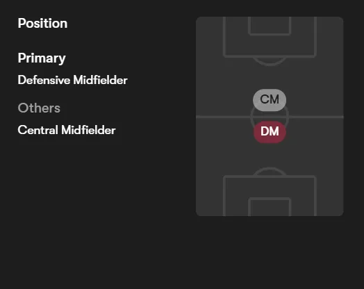 Físico dominante, recupera, cubre espacios y asegura salida limpia. No solo roba: acompaña jugada sin perder solidez. Técnica fiable, buen primer pase y circulación segura. No desorganiza; facilita. Rinde mejor con interiores creativos cerca. Un mediocentro ideal para un modelo equilibrado y compacto.