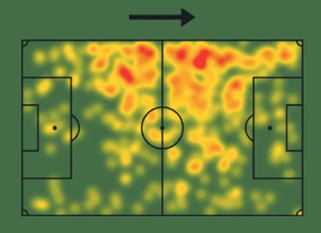 Como mencionamos anteriormente, no parece un interno por izquierda excelente porque no tiene como virtud ser un buen pasador y conductor profundo, por ende lo prefiero más en zonas altas que medias. Justamente donde más influye es atacando espacios y conduciendo pero no en distancias muy alejadas al área rival, en donde tiene el real impacto y puede tener actividades con pelota frecuentemente.