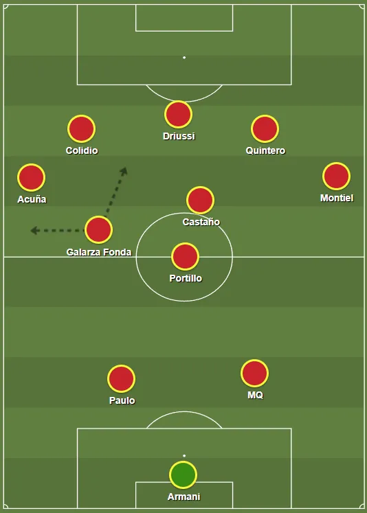 Siempre y cuando Gallardo lo vea a tono físicamente, Galarza podría insertarse como un jugador de banda izquierda con incidencias en zonas altas de campo y con una intensidad superior al resto que le permite un desgaste mayor en términos de presión.