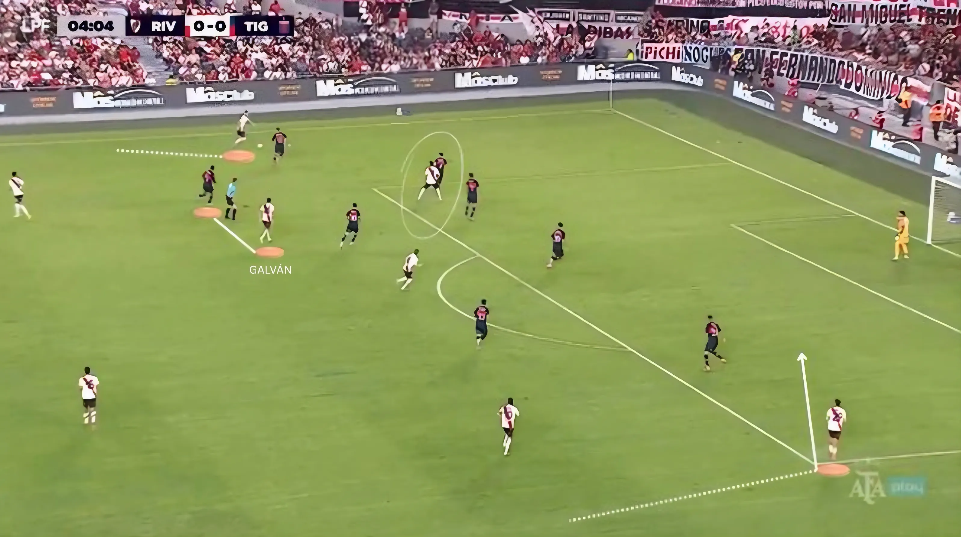 Galván logró imponerse con movimientos sin pelota alrededor del área, ocupando espacios que dejaban Driussi o Colidio cuando descendían. Su compresión espacial le permitió ser útil ahí.