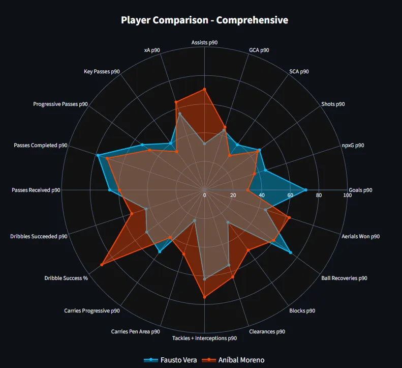 Adjuntamos una comparación entre Fausto Vera y Aníbal Moreno para que puedan ver las diferencias. Esas acciones defensivas que actualmente necesitamos en un ‘5’, el volante del Mineiro no las tiene.