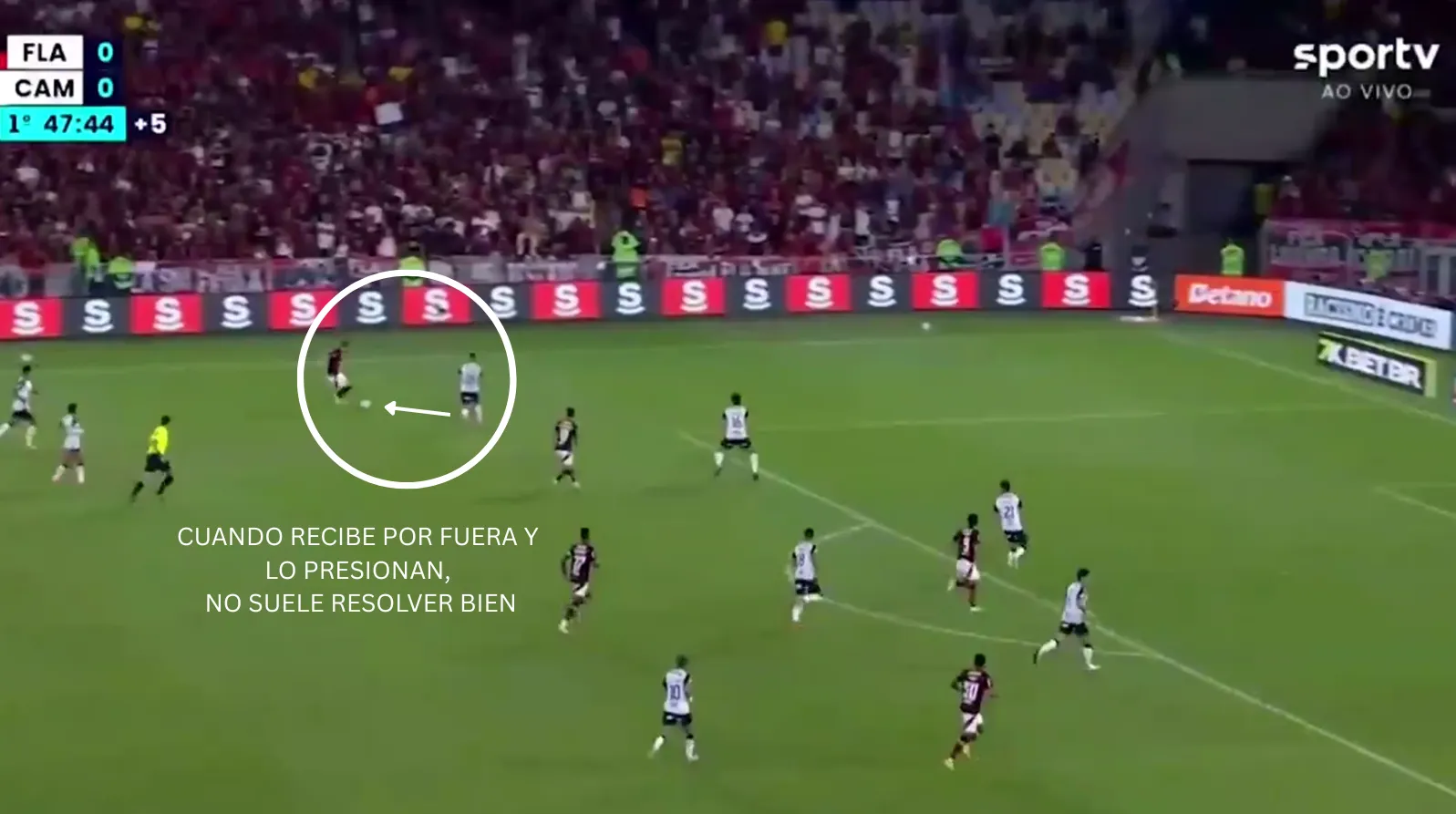 No es sólido progresando por pase ni limpiando jugadas bajo presión. Tampoco destaca en conducciones en zonas avanzadas, y cuando lo fuerzan, sufre mucho al momento de resolver en pocos segundos o con poco margen de maniobra.