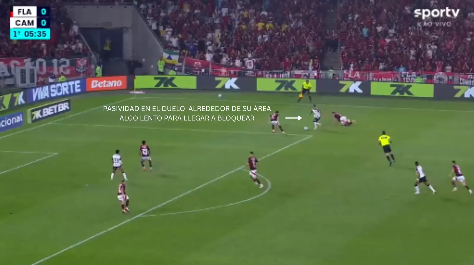 Sus centros no son su principal virtud. Tiene poco repertorio de ángulos y, cuando recibe abierto bajo presión, suele tardar en soltar el pie, perdiendo eficacia en esa resolución.