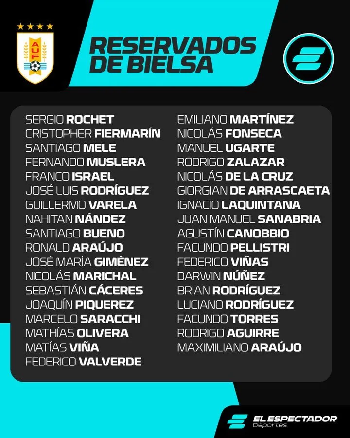 Si bien esta nómina preliminar no fue confirmada oficialmente por la Asociación Uruguaya de Fútbol, en los próximos días se dará a conocer. Y pese a que faltaría un recorte previo para el Mundial, al tratarse de la penúltima convocatoria, y teniendo en cuenta la importancia de Viña para Bielsa, todo indica que el jugador de 28 años jugará la Copa del Mundo.