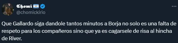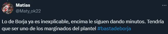 Las críticas de los hinchas a Borja