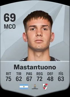 Mastan tiene una valoración inicial de 75. Por su parte, tiene un potencial (valoración que puede obtener con el transcurso del juego) de 88. De esta forma, el jugador de River se convierte en uno de los jóvenes con mayor proyección, quedando solo por detrás de un puñado de futbolistas como Lamine Yamal, entre otros.