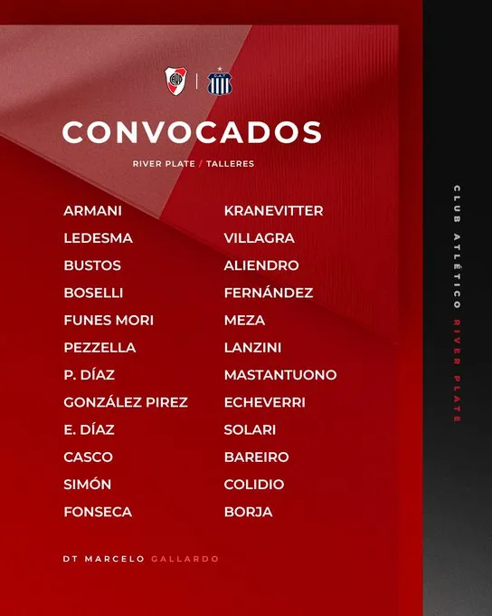 La lista de convocados de River vs. Talleres