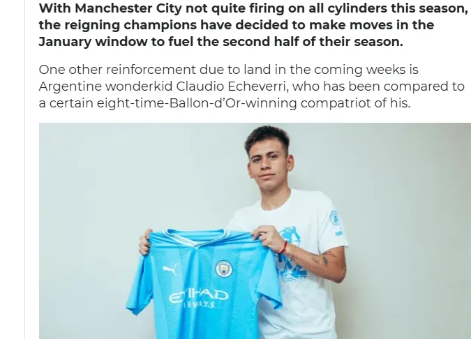 Si bien todavía no tuvo su primer entrenamiento, los medios ingleses ya especulan con que Echeverri podría ser convocado para el partido que el City disputará el sábado 1° de marzo desde las 14:45 ante Plymouth Argyle, por la quinta ronda de la FA Cup.