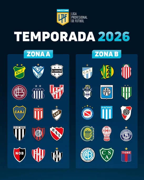 La temporada 2026 del fútbol argentino empieza a tomar forma y River ya conoce a sus rivales para el próximo año. Además de los 14 clubes con los que compartirá la Zona B de los torneos Apertura y Clausura, el Millonario tendrá que enfrentar a Boca y Vélez en las fechas interzonales. Sin embargo, por otro lado, habrá a quienes no les verá las caras por segundo año consecutivo.