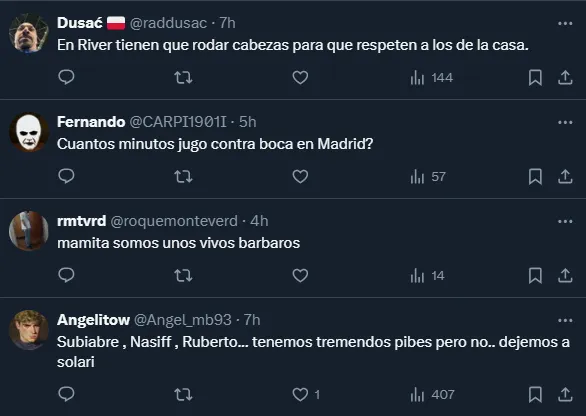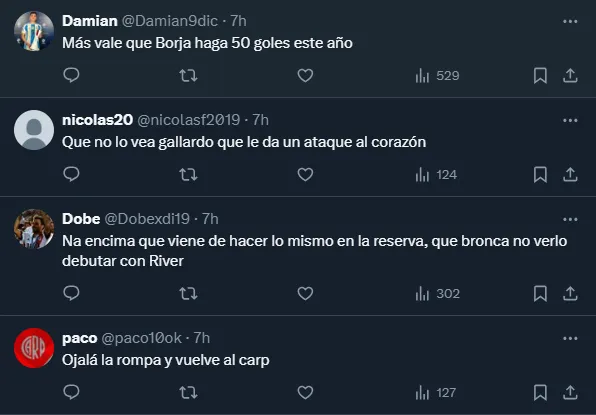 Muchos hinchas de River no tardaron en manifestar su enojo en redes sociales al ver a un chico del club que empieza a rendir en otro lado que no sea en Nuñez. Justo en el mismo día en donde Marcelo Gallardo tuvo un pequeño cruce con un periodista a raíz de una pregunta sobre los pocos minutos que le venía dando a los juveniles.