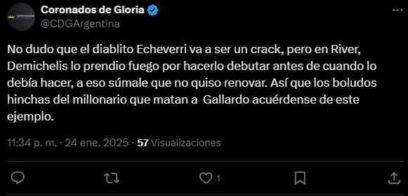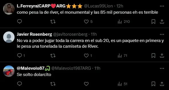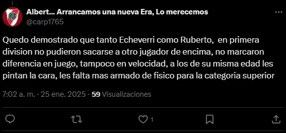 Las opiniones de los hinchas de River sobre Echeverri tras la goleada