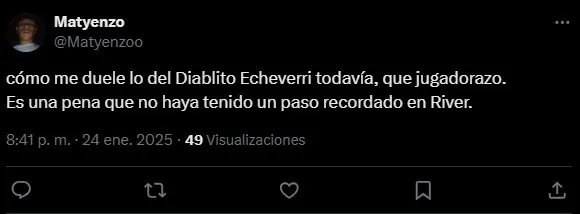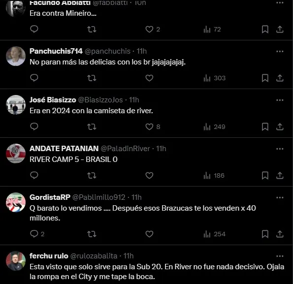 Mientras tanto, el ex River se luce con la 10 argentina en la espalda. El viernes por la noche el equipo de Diego Placente consiguió una histórica goleada en el clásico sudamericano, y el Diablito se despachó con dos goles y una asistencia. Fue la gran figura de una noche en la que los pibes riverplatenses demostraron cuáles son las mejores Inferiores del país. Aunque la actuación de Echeverri dio mucho de qué hablar en redes.