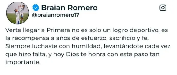 El partido entre River y Vélez del pasado fin de semana había abierto la chance de enfrentarse con su hermano Braian Romero, con quien comparten madre habiendo nacido con diferente padre. Sin embargo la lesión del delantero ex-River les anuló ese sueño momentáneamente. De todas maneras, Braian no se guardó palabras emotivas para felicitar al pibe en su debut. “Verte llegar a Primera no es solo un logro deportivo, es la recompensa de años de esfuerzo, sacrificio y fe. Siempre luchaste con humildad, levantándote cada vez que te hizo falta”, expresó en su cuenta de Instagram.