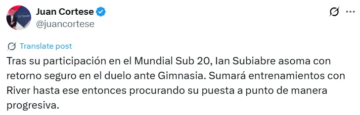 Cabe destacar que Subiabre no juega en River desde el pasado 31 de agosto, durante la victoria frente a San Martín de San Juan por 2-0. Tras esto, se generaron algunas rispideces entre el representante del futbolista, Claudio Caniggia, y el club por la renovación de su contrato.