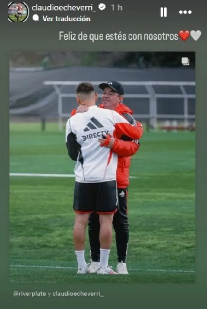 Mientras espera por el arribo de Maximiliano Meza y Fabricio Bustos, Marcelo Gallardo tuvo una incorporación de lujo durante el entrenamiento del martes ya que recibió con los brazos abiertos a Claudio Echeverri tras su paso por los Juegos Olímpicos con la Selección Argentina.
