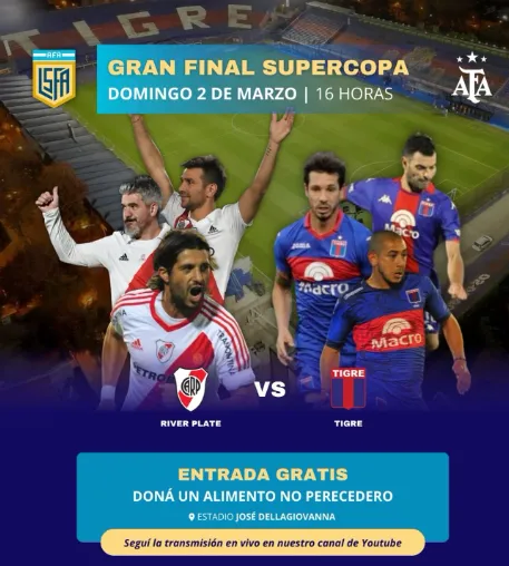 Para aquellos que deseen alentar a River en la final, la entrada será libre y gratuita. Solo se pedirá la colaboración de un alimento no perecedero. Aún no se detalló cómo será la distribución de las parcialidades en las tribunas.
