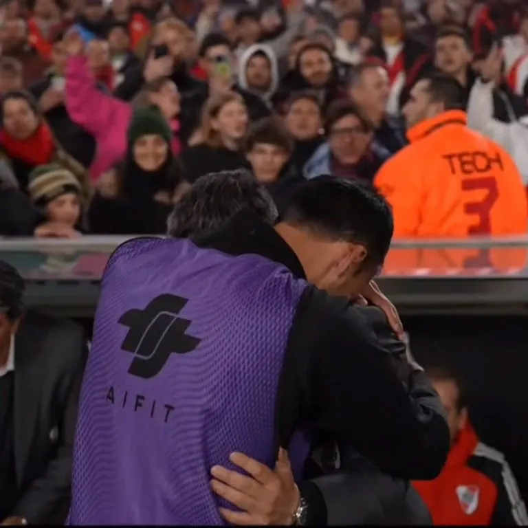 El Piri, campeón de la Copa Libertadores 2015 con el Más Grande y muy querido por todo el público riverplatense, se levantó del banco de suplentes antes de que comenzara el encuentro para dirigirse al sector de River y fundirse en un sentido abrazo con Marcelo Gallardo, el técnico que en gran parte lo hizo ser el futbolista que es.