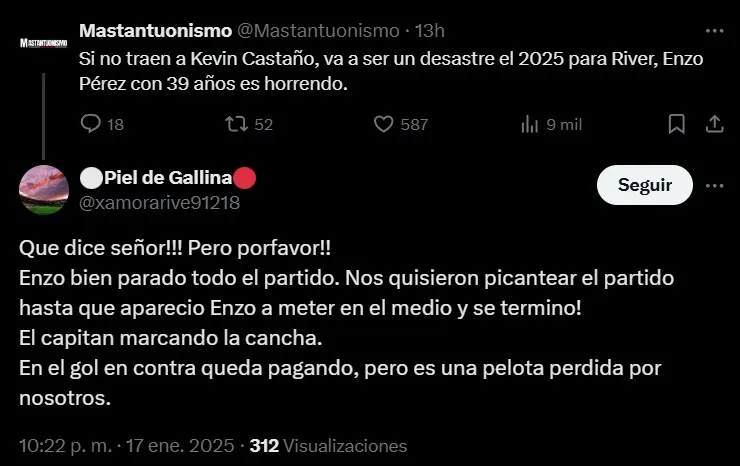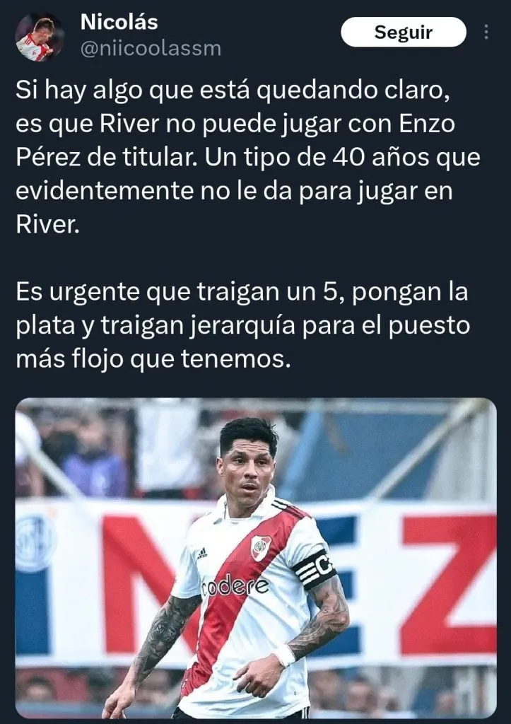 Las opiniones cruzadas de los hinchas de River con Enzo Pérez