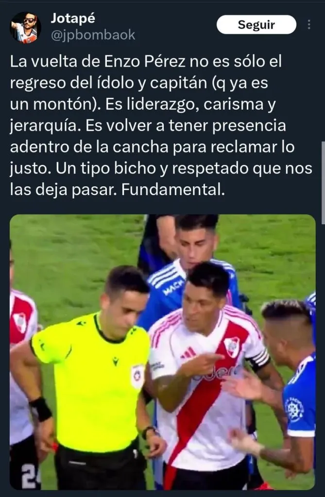 Enzo Pérez es el ultimo ídolo de River y por eso merecía una vuelta para tener un final con el Manto Sagrado a la altura de lo que fue su trayectoria en el club, luego de una desprolija salida por conocidas razones. Sin embargo, su regreso generó opiniones cruzadas en los hinchas, y en las redes hubo debate luego de su debut ante Universidad de Chile.