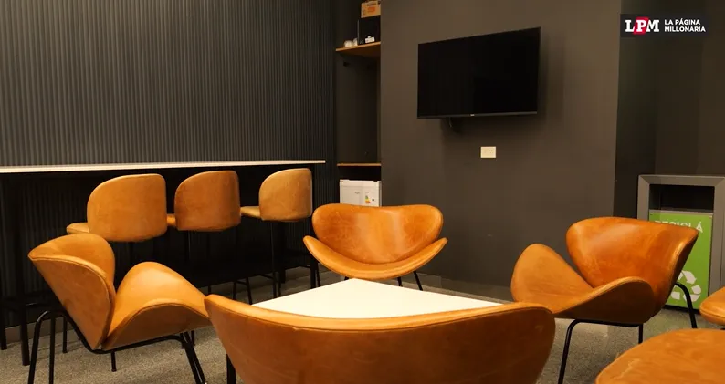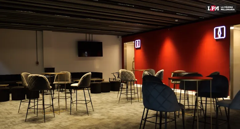 Cuenta con mesas, sillas, butacas y pantallas led para seguir todas las incidencias del partido.