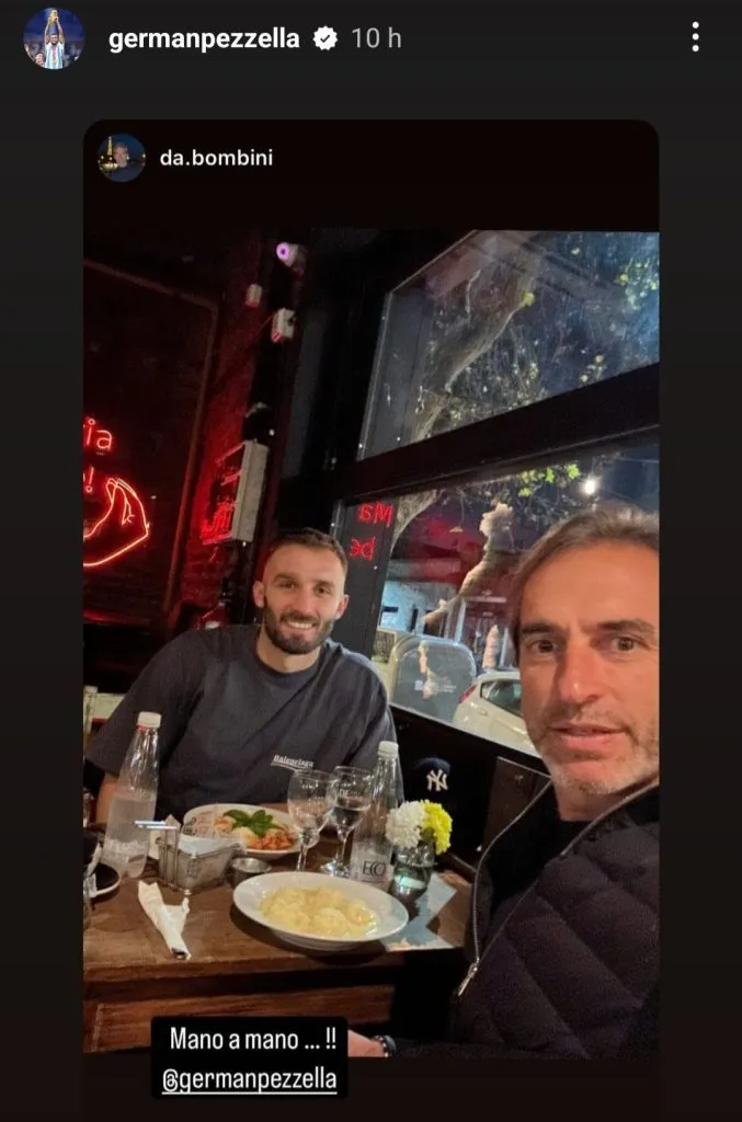 En la noche del jueves Pezzella reposteó una foto en su cuenta de Instagram donde se lo vio cenando con Darío Bombini, uno de sus representantes. Un cónclave que seguramente fue clave para terminar de tomar la decisión de su regreso a River.