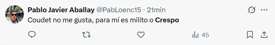 Pasadas las horas, la desazón por la partida de Marcelo Gallardo debió quedar en el margen y en River ya se piensa en el futuro. En ese sentido, mientras ya se contactó a Pablo Aimar y el principal candidato es Eduardo Coudet, otro que figura en la lista de posibles reemplazantes es Hernán Crespo.