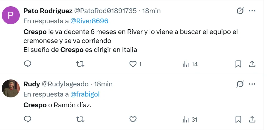 Qué piensan los hinchas de River sobre Hernán Crespo como DT