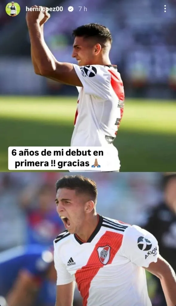 Esta vez, desde Estados Unidos, el talentoso volante que brilla en el FC Dallas recordó su primer y único partido con la camiseta de River a través de una historia en Instagram: “¡6 años de mi debut en Primera! Gracias”, escribió junto a una imagen del encuentro ante Tigre.