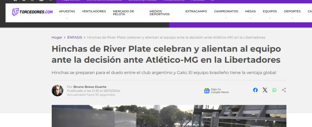 Con elogios y adjetivos muy positivos para la gente del Millonario, la prensa internacional y hasta hinchas de Mineiro se hicieron eco del suceso destacando que River tendrá un plus en esta noche ante Atlético Mineiro por lo que da su gente: “Una pequeña muestra de lo que enfrentará Galo el martes, ante más de 80 mil hinchas argentinos”, tituló un importante medio partidario.