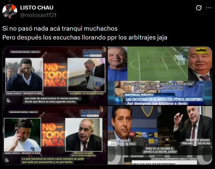 De hecho, días antes de la declaración de Russo, la polémica ya se instaló en torno a la participación de Boca en la Libertadores. A los 6 minutos del encuentro entre el eterno rival y Universidad Católica, Weigandt metió un planchazo a la altura de la canilla del rival. El árbitro no solo no lo amonestó, sino que el VAR brilló por su ausencia.