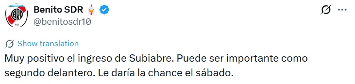 De esta forma, Subiabre pide pista para gozar de más minutos en la consideración de Marcelo Gallardo durante la temporada 2026. El año pasado participó de 18 partidos y convirtió dos goles: ¿Será este el año de su despegue definitivo?